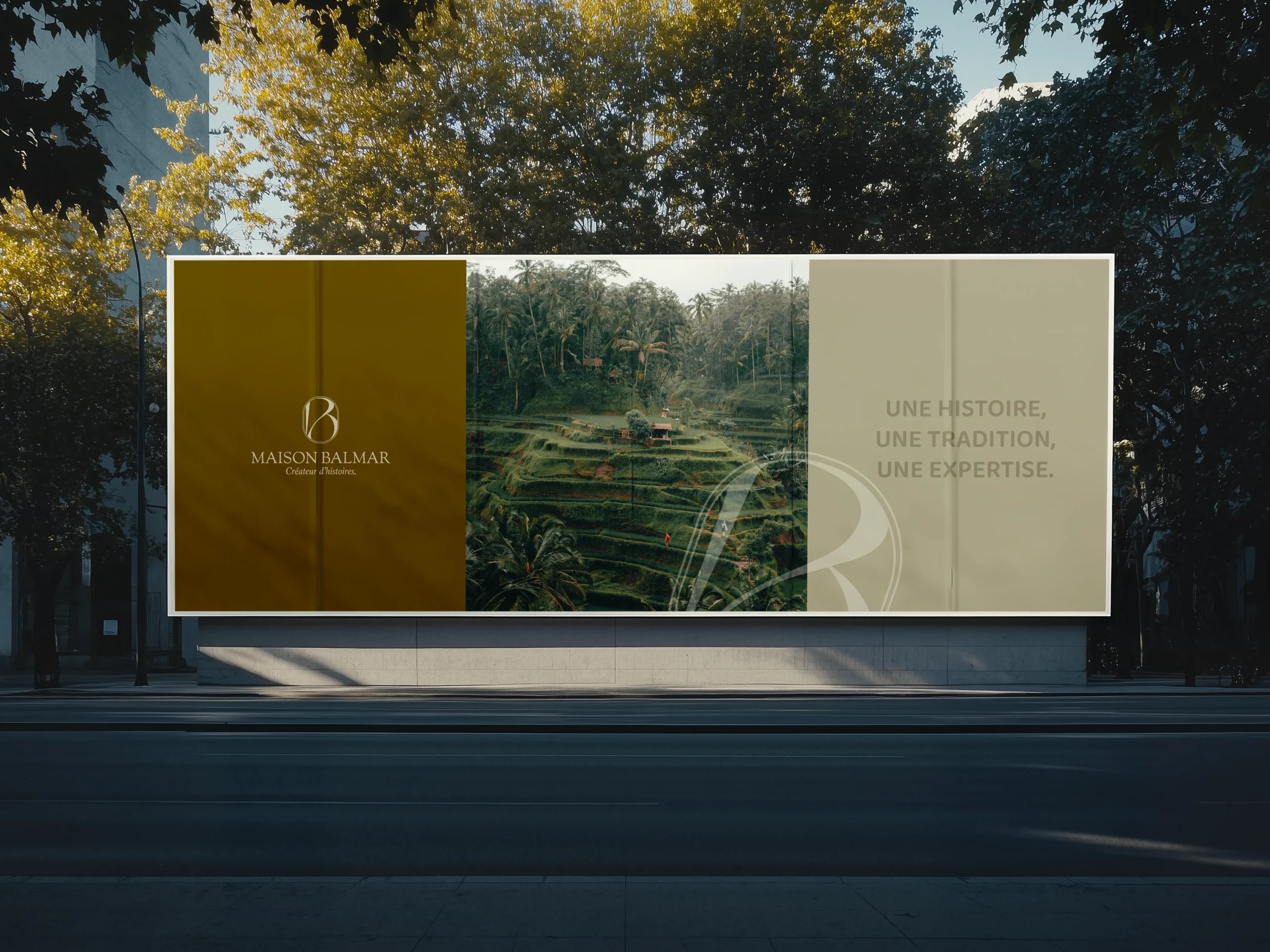 Visuel artistique en noir et blanc pour Maison Balmar, mettant en valeur un design raffiné signé par Markeuz Studio une graphiste freelance à Lyon, spécialiste en identité visuelle de luxe.